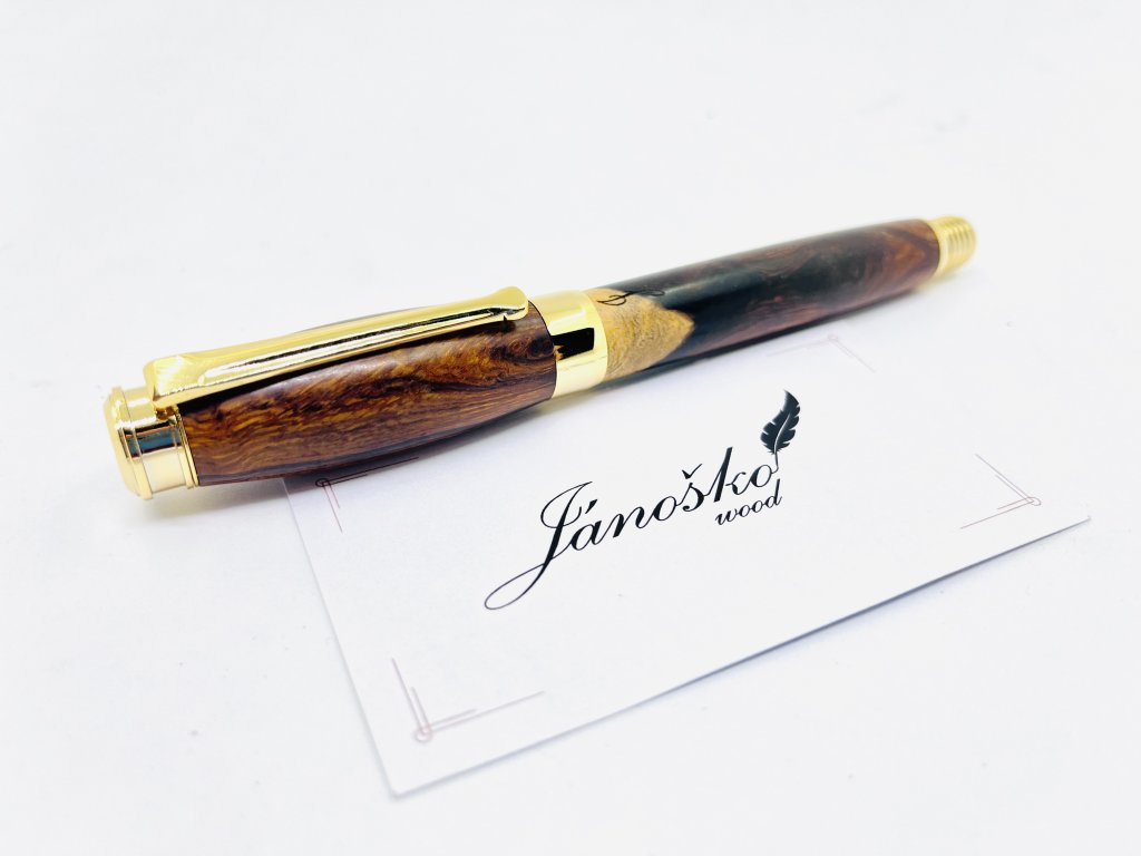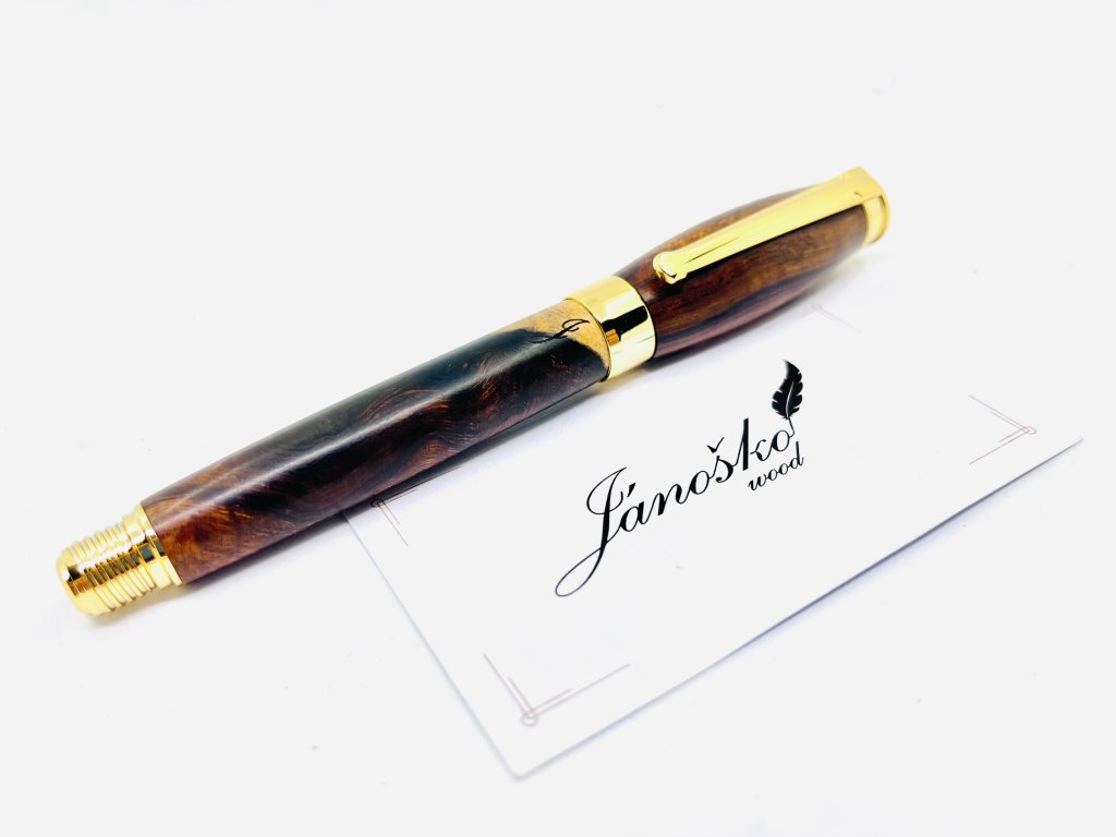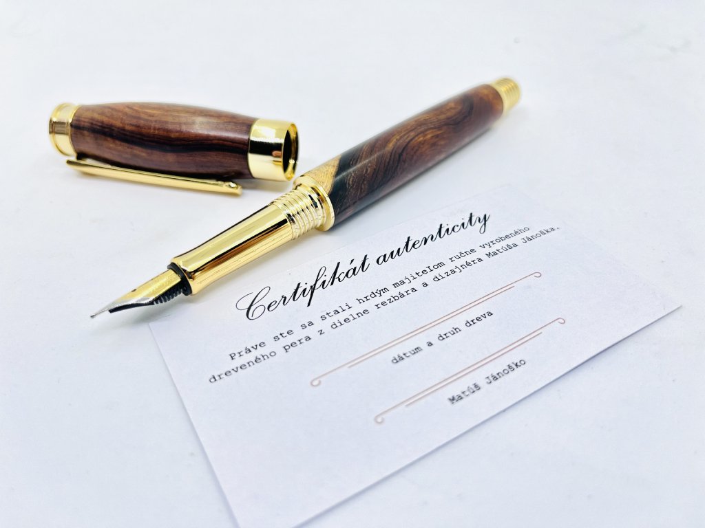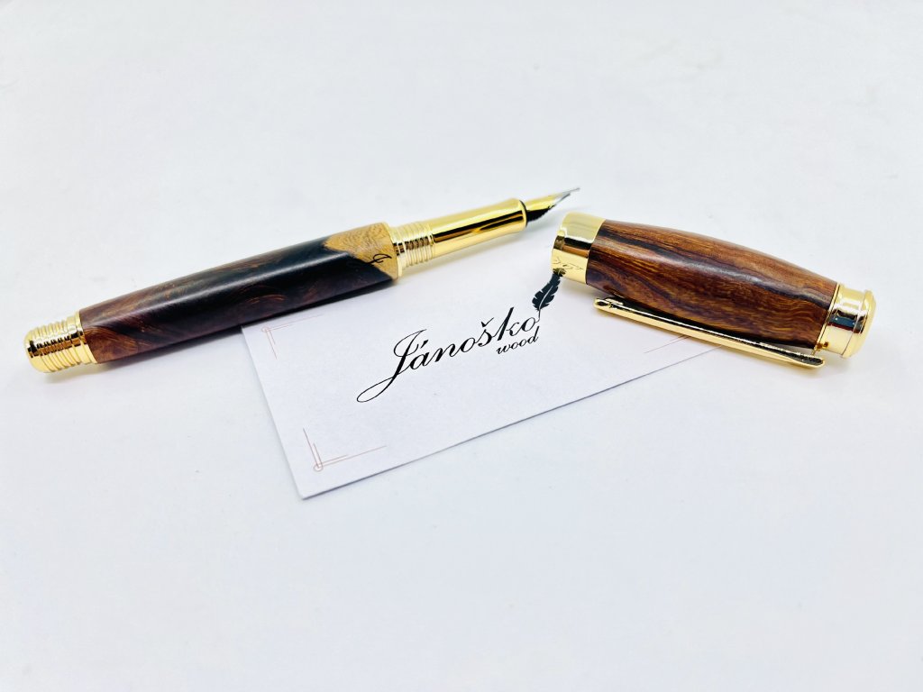 Plniace pero s irídiovým hrotom, oceľovým mechanizmom a dreveným telom.