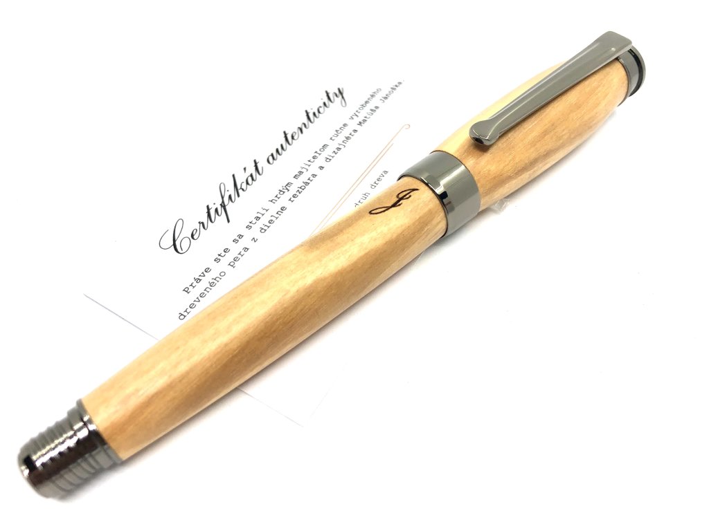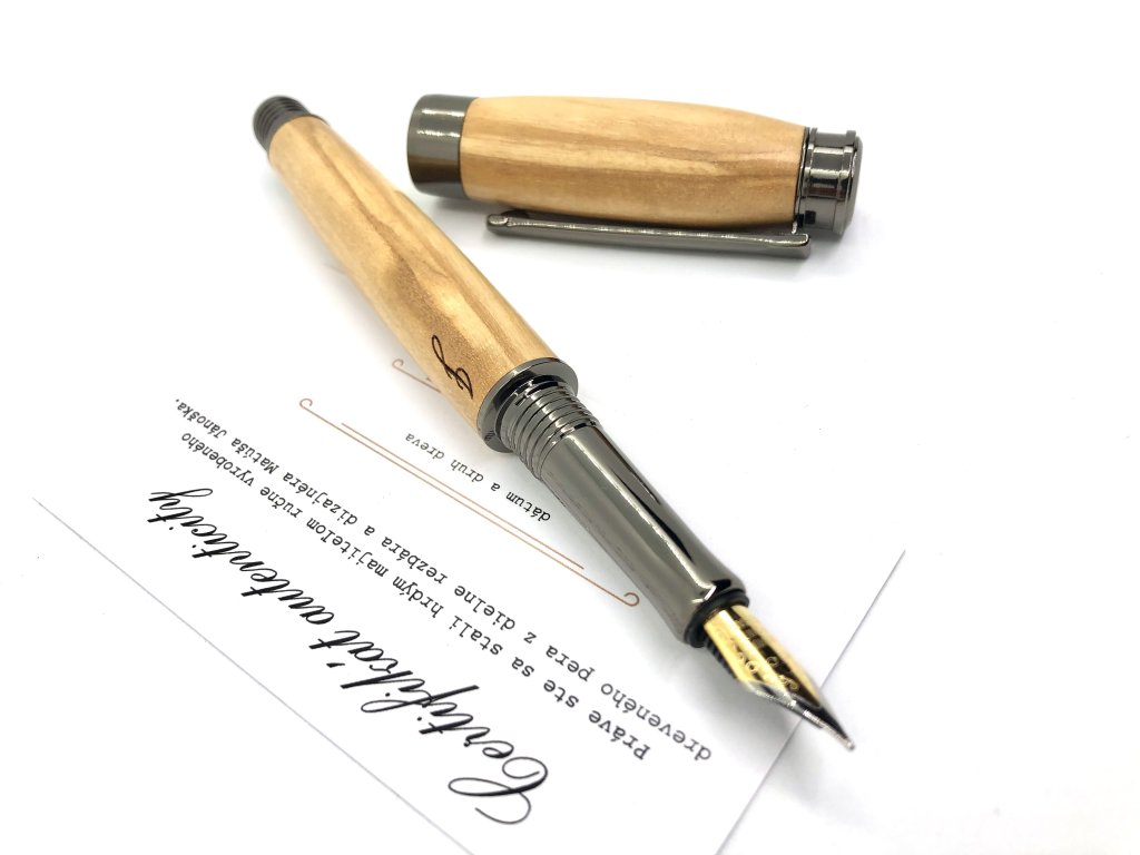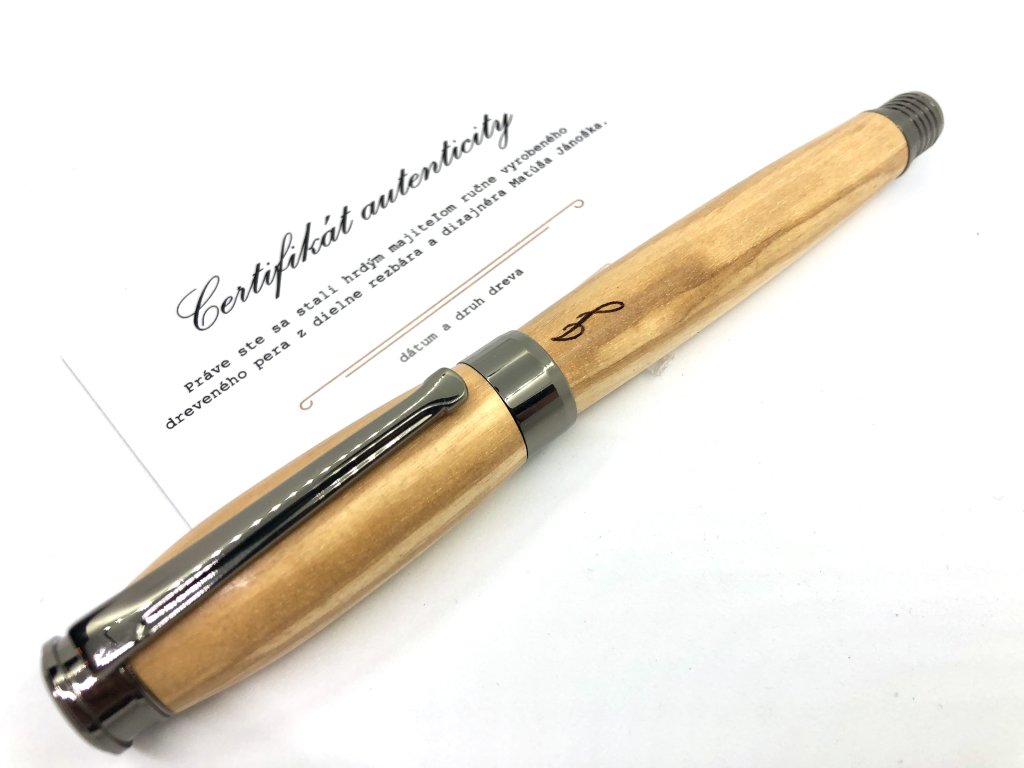 Práve toto pero je vyrobené z olivy pochádzajúcej zo Španielska. Drevo olivy je olejovité a pri opracúvaní cítiť výraznú vôňu jeho plodov.